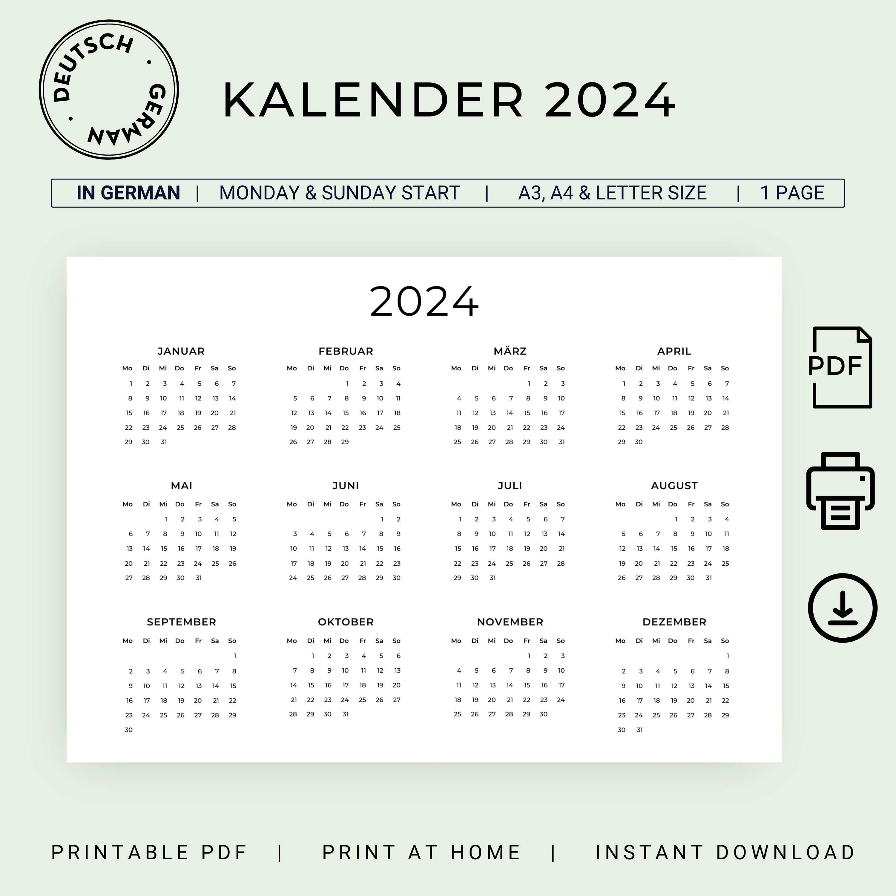 Kalender 2024 Kalender Deutsch Jahreskalender 2024 Yearly Etsy