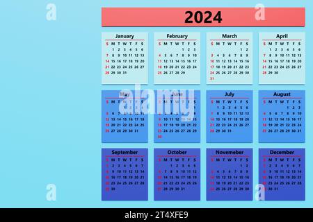 calendar, 2024, 12 months, 1 page, 1 photo Stock Photo Alamy