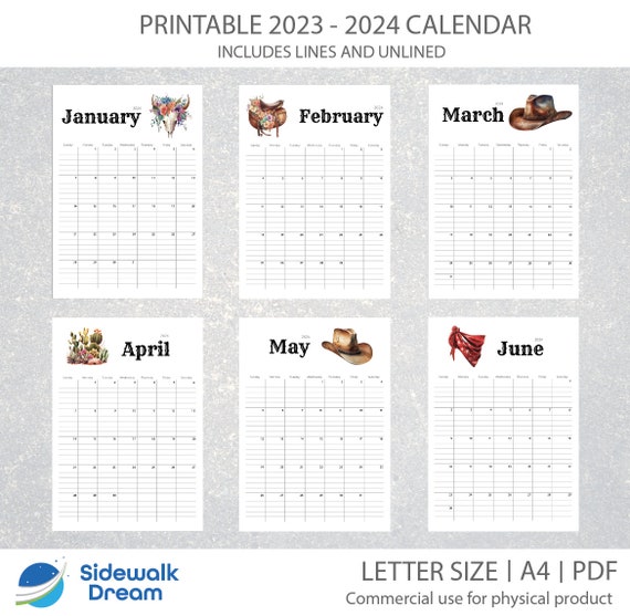 Printable Cowboy Calendar 2023 2024 Western Wall Calendar Etsy