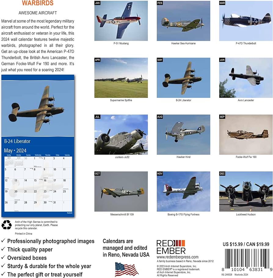 Amazon.com: RED EMBER Warbirds 2024 Hangable Monthly Wall Calendar